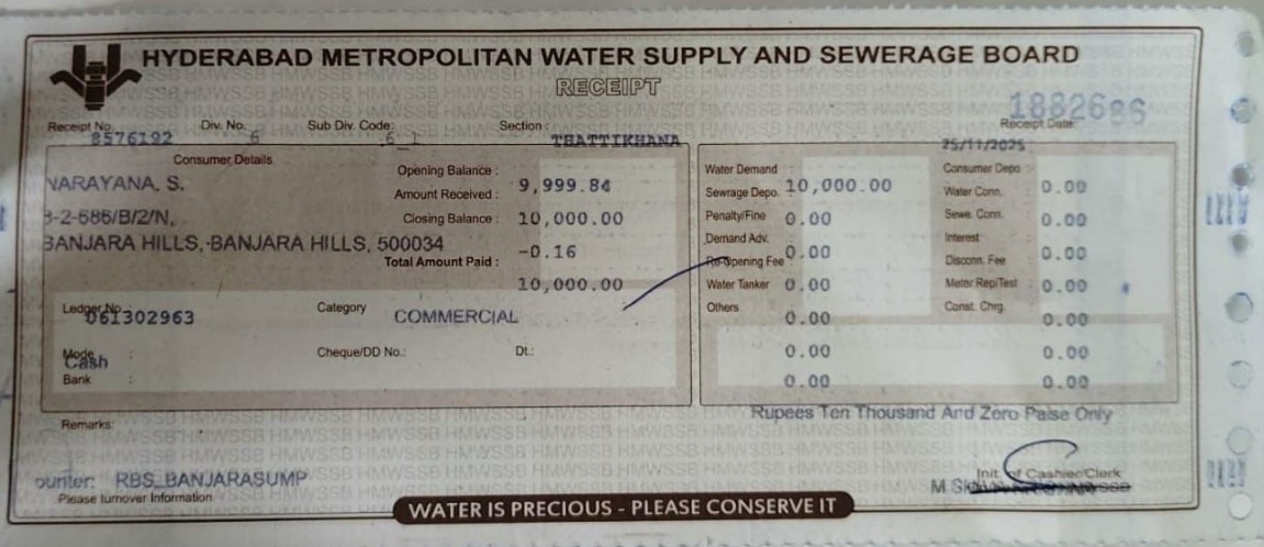 हैदराबाद में पीने के पानी के दुरुपयोग करने वाले व्यक्ति पर हैदराबाद मेट्रोपॉलिटन वाटर सप्लाई एंड सीवरेज बोर्ड (HMWSSB) के प्रबंध निदेशक (MD) ने सख्त कार्रवाई करते हुए 10,000 रुपये का जुर्माना लगाया गया और सख्त चेतावनी दी.
