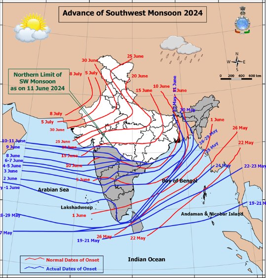 देश के नक्शे से समझें तो केरल में मॉनसून वक्त से पहले ही पहुंच चुका है. तमिलनाडु में भी जमकर मॉनसून के बादल बरस रहे हैं. मॉनसून ने कर्नाटक के ज्यादातर इलाकों को कवर कर लिया है. आंध्र प्रदेश के ज्यादातर इलाकों में मॉनसून की बारिश हो रही है. तेलंगाना के अधिकतर इलाकों तक मॉनसून दस्तक दे चुका है.