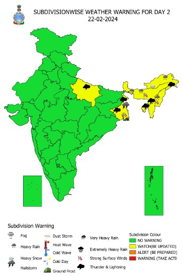 मौसम विभाग के मुताबिक, आज पश्चिम बंगाल, असम, मेघालय, त्रिपुरा, मिजोरम, मणिपुर, नागालैंड और अरुणांचल प्रदेश में बारिश से लेकर आंधी-तूफान और बर्फबारी की संभावना है. स्काईमेट के मुताबिक, अरुणाचल प्रदेश में 23 फरवरी तक बारिश और बर्फबारी की संभावना जारी रह सकती है. इसके अलावा उत्तर प्रदेश में भी आज बारिश का अलर्ट है.