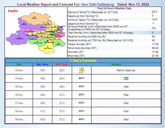 मौसम विभाग की ओर से दी गई जानकारी के मुताबिक, आज, 14 नवंबर को दिल्ली में न्यूनतम तापमान 13 डिग्री और अधिकतम तापमान 28 डिग्री दर्ज किया जा सकता है. वहीं, सुबह के वक्त कोहरा और आसमान में धुंध देखने को मिल रही है. अगर वायु प्रदूषण की बात करें तो AQI बहुत खराब कैटेगरी में बना हुआ है. दिल्ली में आज भी औसत AQI 300 के पार रहने का अनुमान है.