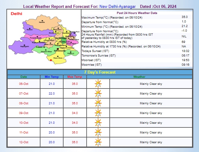 देश की राजधानी दिल्ली में इस बार जमकर बरसात हुई. हालांकि, बारिश के बाद अब खूब उमस भी हो रही है. यहां अधिकतम तापमान अभी बढ़ा हुआ चल रहा है, जिसके चलते दोपहर के वक्त गर्मी का सितम जारी है. जबकि सुबह के वक्त हल्की ठंड का एहसास हो रहा है. आज भी दिल्ली में अधिकतम तापमान 36 डिग्री सेल्सियस तक पहुंचेगा जबकि न्यूनतम तापमान 25 डिग्री रह सकता है. अगले कुछ दिन यहां ऐसा ही मौसम बने रहने की संभावना है.