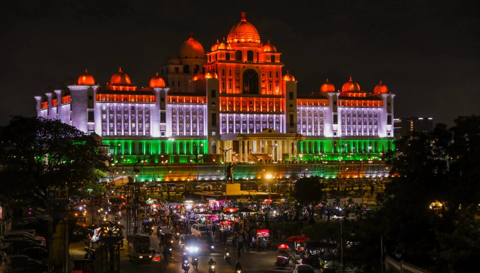 हैदराबाद में तेलंगाना सचिवालय भवन भी भारतीय तिरंगे से जगमगा रहा था.