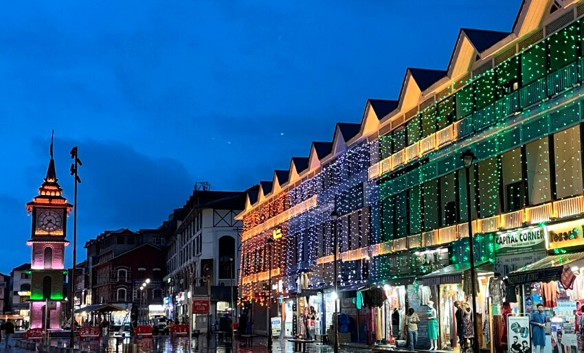 जम्मू-कश्मीर के श्रीनगर स्थित लाल चौक पर घंटाघर और दुकानें भारतीय तिरंगे से जगमगा रही हैं.
