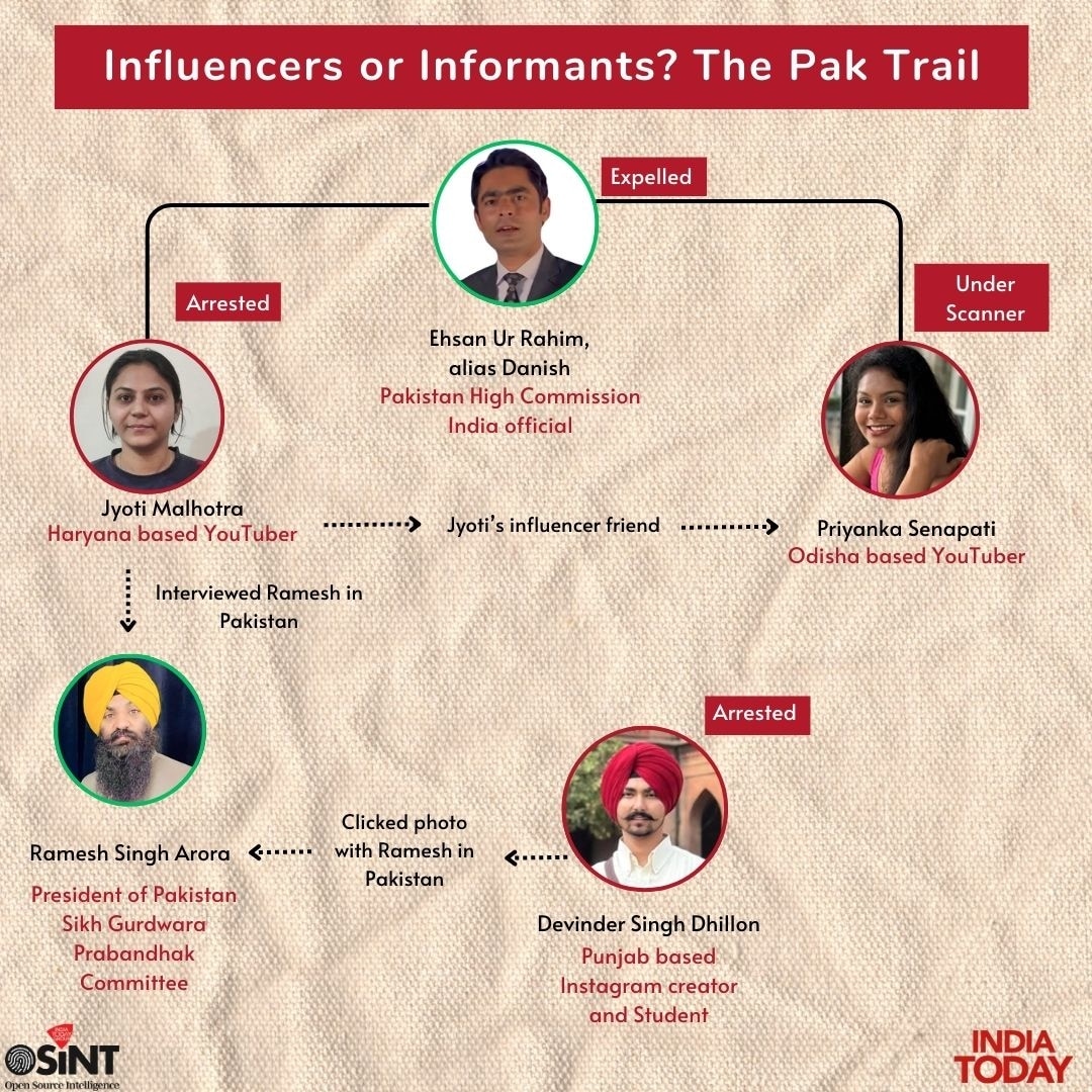 आजतक ने पाकिस्तान से जुड़ी कथित जासूसी के लिए वर्तमान में रडार के तहत तीन प्रभावशाली लोगों के सोशल मीडिया पैटर्न का विश्लेषण किया. ज्योति मल्होत्रा, प्रियंका सेनापति और देविंदर सिंह ढिल्लों... उन प्रमुख डिजिटल क्रिएटर्स में से हैं, जिनके नाम चल रही जांच में सामने आए हैं.