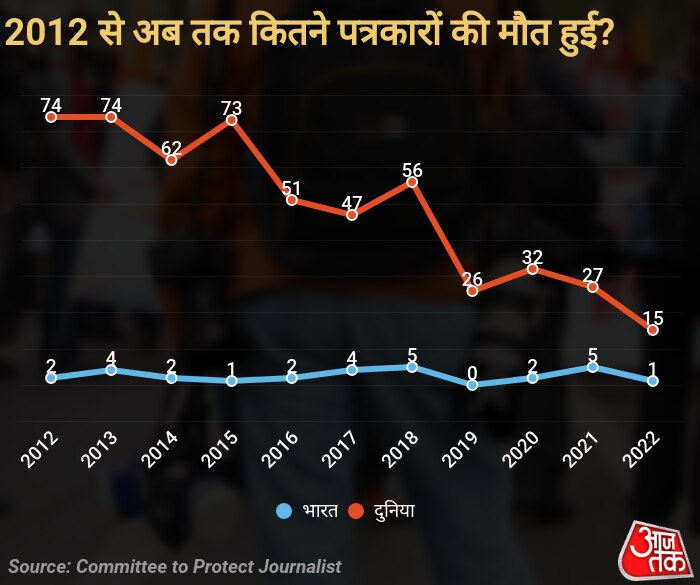 कमेटी टू प्रोटेक्ट जर्नलिस्ट के मुताबिक, दुनियाभर में पत्रकारों पर हमले बढ़ते जा रहा है. रिपोर्टिंग करते समय कई पत्रकारों को अपनी जान गंवानी पड़ी है. 2012 से लेकर अब तक दुनियाभर में 537 पत्रकारों की हत्या हो चुकी है. इसी दौरान भारत के 28 पत्रकारों की भी उनके काम के चलते जान गई.