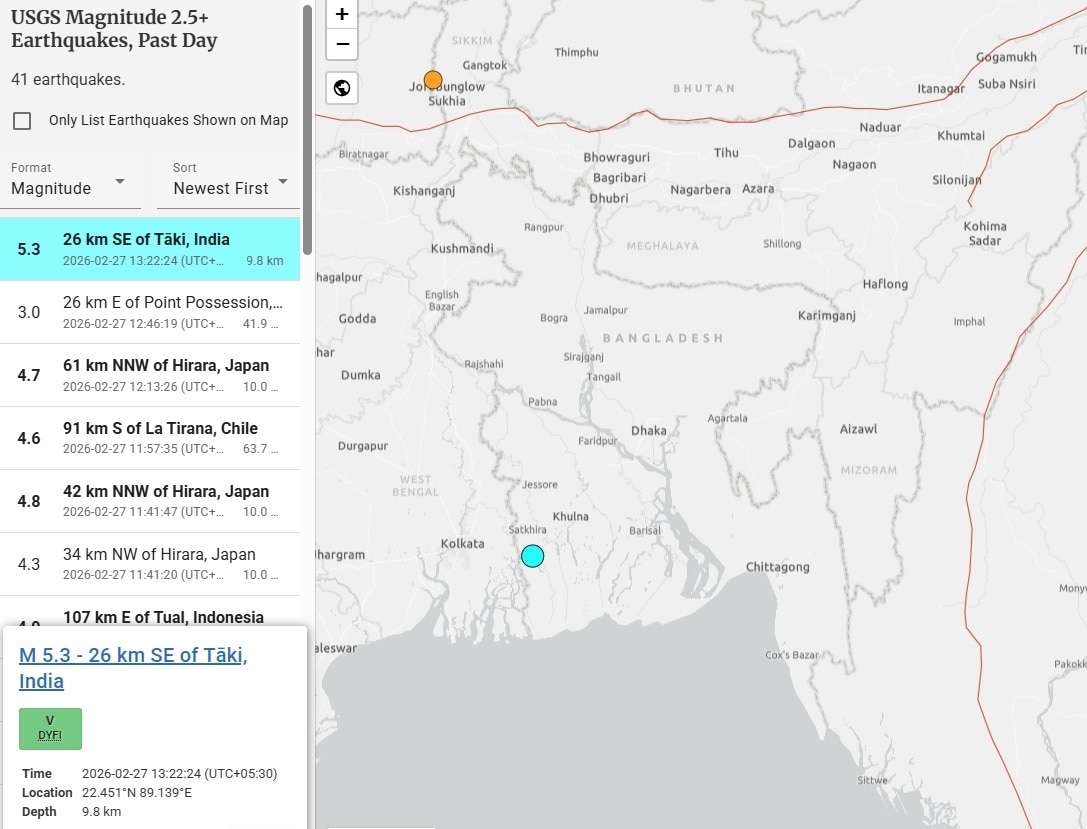 शुरुआती रिपोर्टों के मुताबिक, भूकंप का केंद्र बांग्लादेश में रहा. भूकंप के झटके कुछ सेकंड तक ही रहे. भूकंप का असर ऊंची इमारतों में ज्यादा महसूस किया गया.