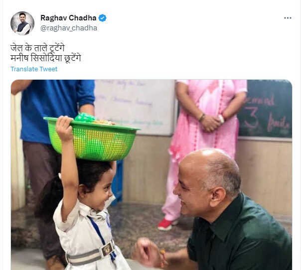 आम आदमी पार्टी के सांसद और प्रवक्ता राघव चड्ढा ने ट्वीट किया और लिखा, "जेल के ताले टूटेंगे, मनीष सिसोदिया छूटेंगे".