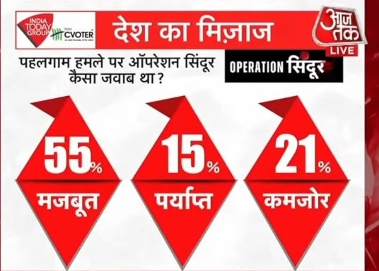 ऐसे में देश का मूड भांपने के लिए इंडिया टुडे ने सी-वोटर के साथ मिलकर 'मूड ऑफ द नेशन' सर्वे किया. सर्वे का सैंपल साइज 2,06,826 था. जबकि सर्वे की तारीख 1 जुलाई 2025 से 14 अगस्त 2025 के बीच रही. सर्वे के दौरान लोगों से पूछा गया कि पहलगाम हमले के बाद ऑपरेशन सिंदूर कैसा रिस्पॉन्स रहा?