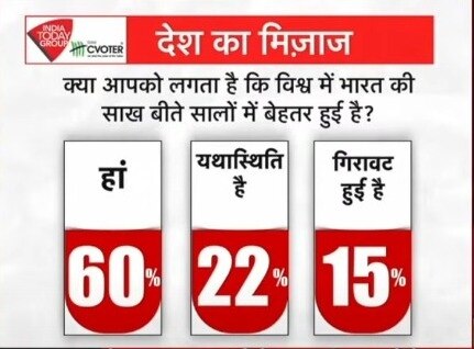 लोगों से पूछा गया कि हाल के वर्षों में दुनिया के अंदर भारत की साख सुधरी है? इसके जवाब में लोगों की राय-