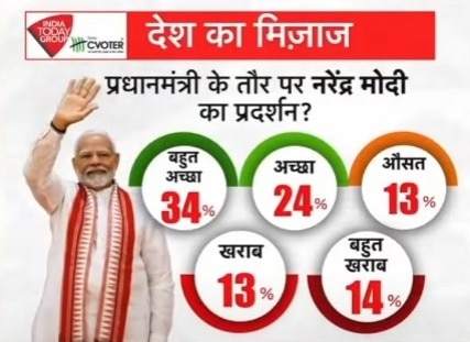 इस सर्वे में लोगों से जब पूछा गया कि प्रधानमंत्री के तौर पर नरेंद्र मोदी का प्रदर्शन कैसा देखते हैं? तो इसके जवाब में 34% लोगों ने इसे बहुत अच्छा बताया जबकि 24% लोगों ने अच्छा और 13 फीसदी लोगों ने इसे औसत माना. वहीं 13 प्रतिशत लोगों ने इसे खराब बताया जबकि 14 प्रतिशत लोगों ने पीएम मोदी के प्रदर्शन को प्रधानमंत्री के तौर बहुत खराब बताया.