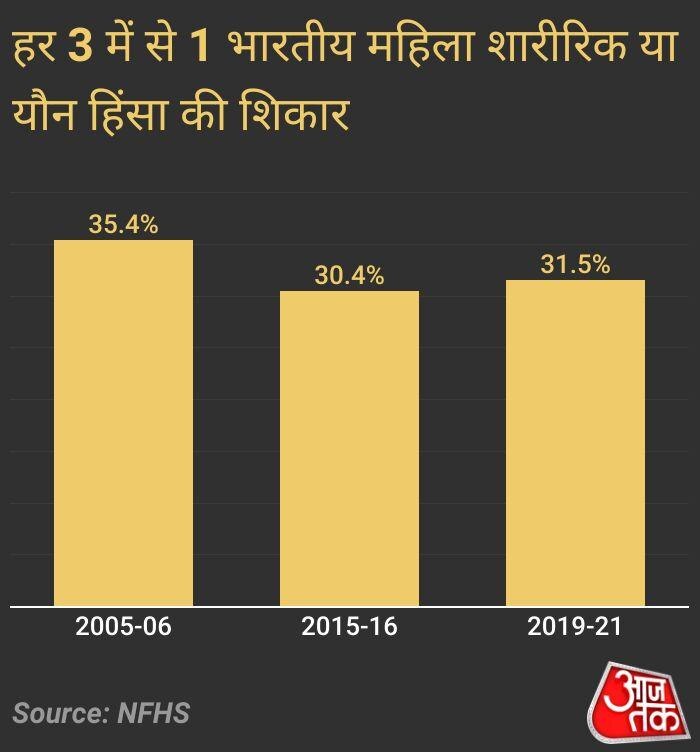 नेशनल फैमिली हेल्थ सर्वे-5 (NFHS-5) के आंकड़े बताते हैं कि भारत में 29 फीसदी महिलाएं शारीरिक, यौन या भावनात्मक हिंसा का अनुभव करती हैं. ये सर्वे 18 से 49 साल की महिलाओं पर किया गया था.
