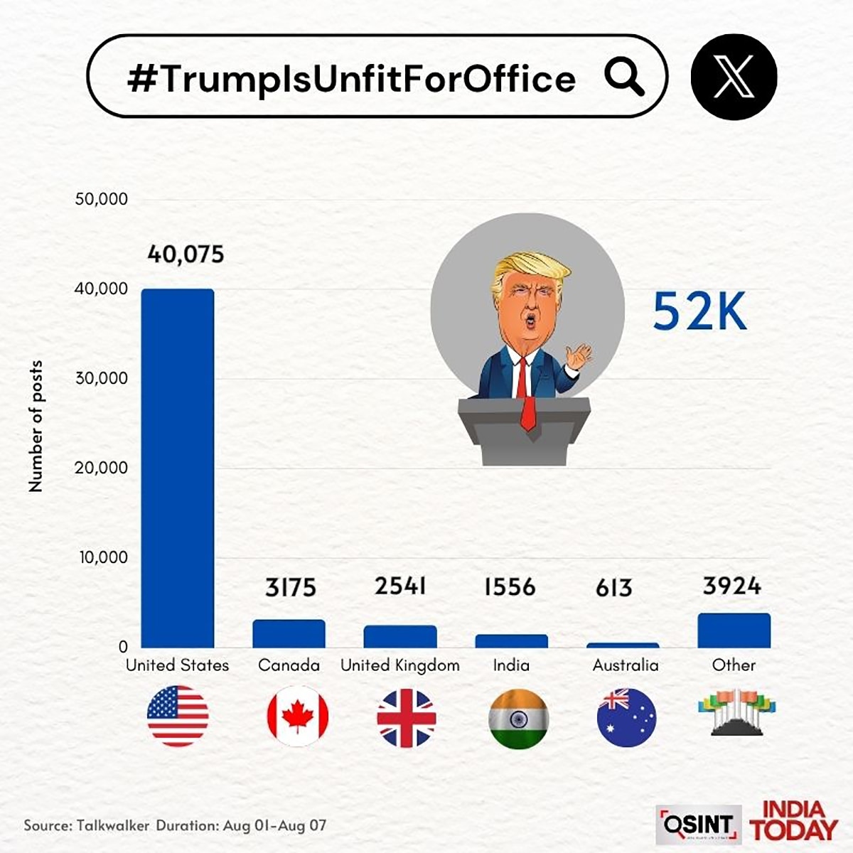 करीब 300 यूजर्स ने 3,000 से ज्यादा पोस्ट्स में ट्रंप के लिए अपशब्द और निजी हमले किए. यह गुस्सा सिर्फ भारत तक सीमित नहीं है. पिछले सात दिनों में दुनियाभर में 2.84 लाख X पोस्ट्स में ट्रंप के लिए अपशब्दों का इस्तेमाल हुआ है.