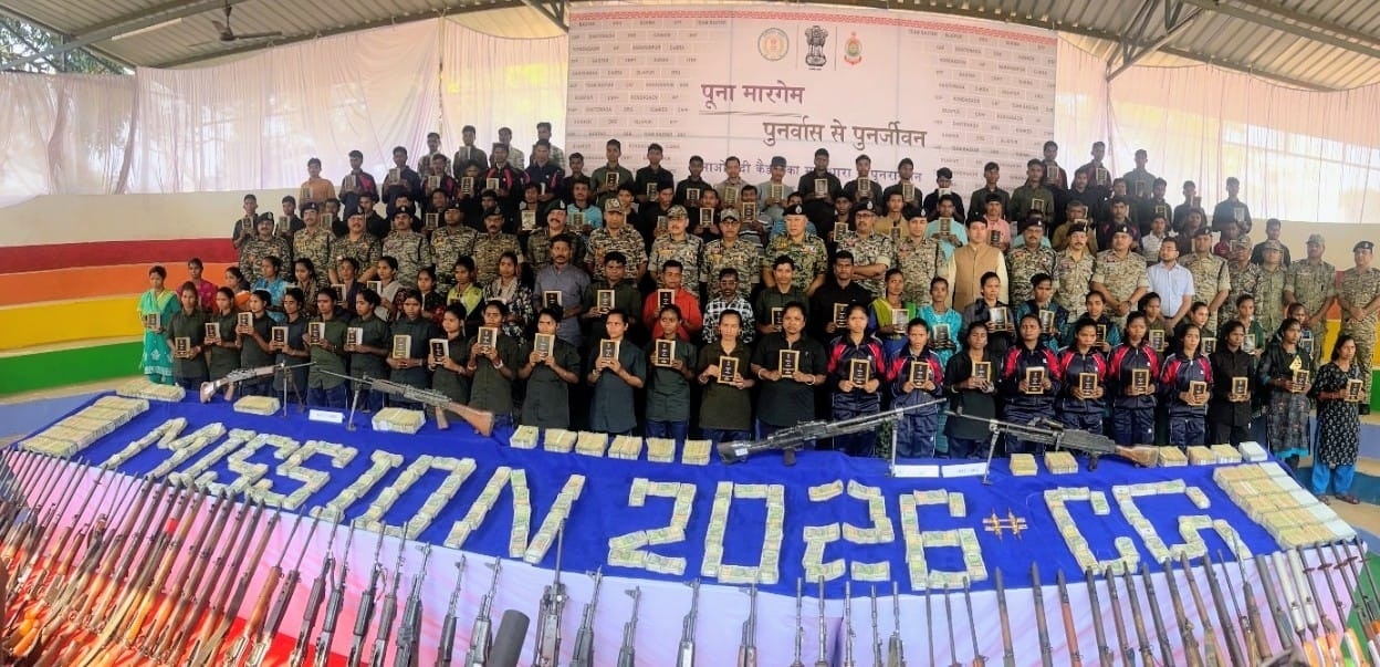 बस्तर संभाग में एक महीने में 170 माओवादी कैडरों की मुख्यधारा में वापसी- विभिन्न जिलों में बड़ी संख्या में कैडरों ने हिंसा का मार्ग त्यागकर समाज के साथ जुड़ने का निर्णय लिया. पिछले एक महीने में 343 से अधिक घातक हथियार बरामद- AK-47, INSAS, SLR, BGL लांचर और LMG जैसे हथियारों की बड़ी बरामदगी ने माओवादी सैन्य क्षमता को लगभग समाप्त कर दिया है.