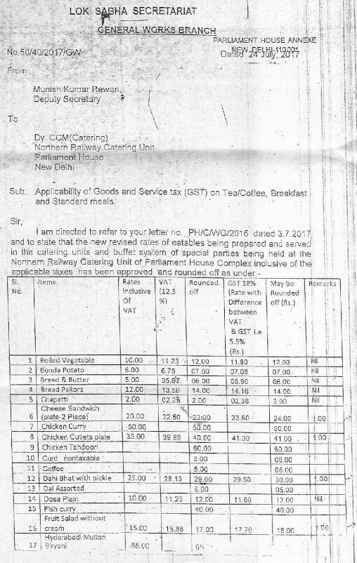 देखें संसद के कैंटीन की पुरानी रेट लिस्ट...