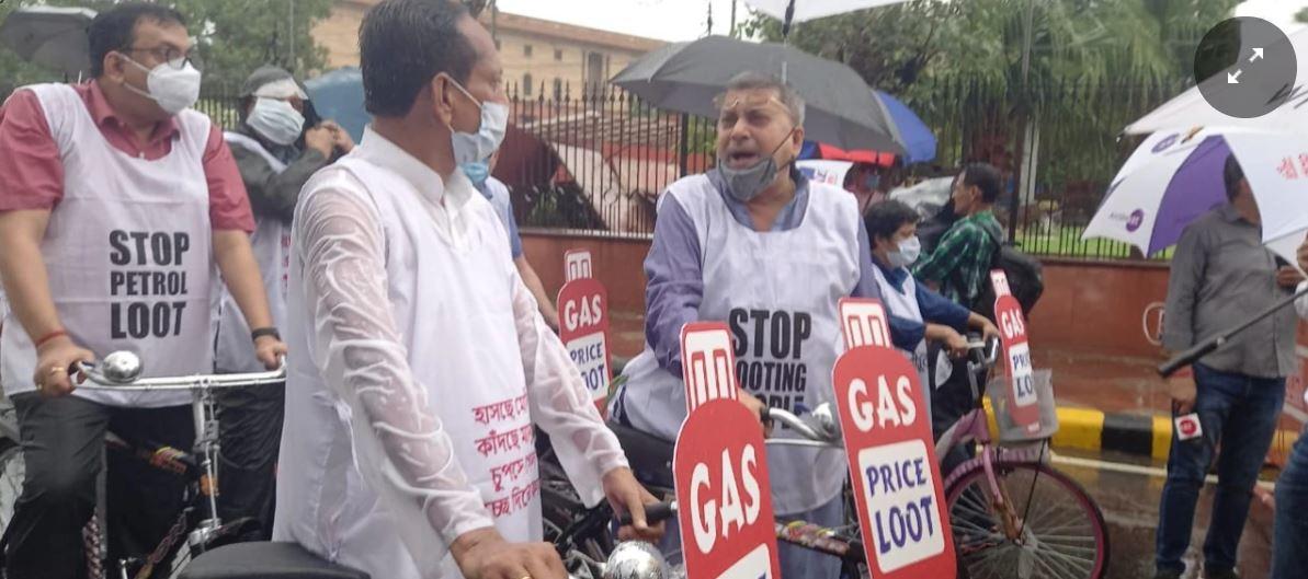 तेल कीमतों पर संसद में टीएमसी का साइकिल प्रोटेस्ट