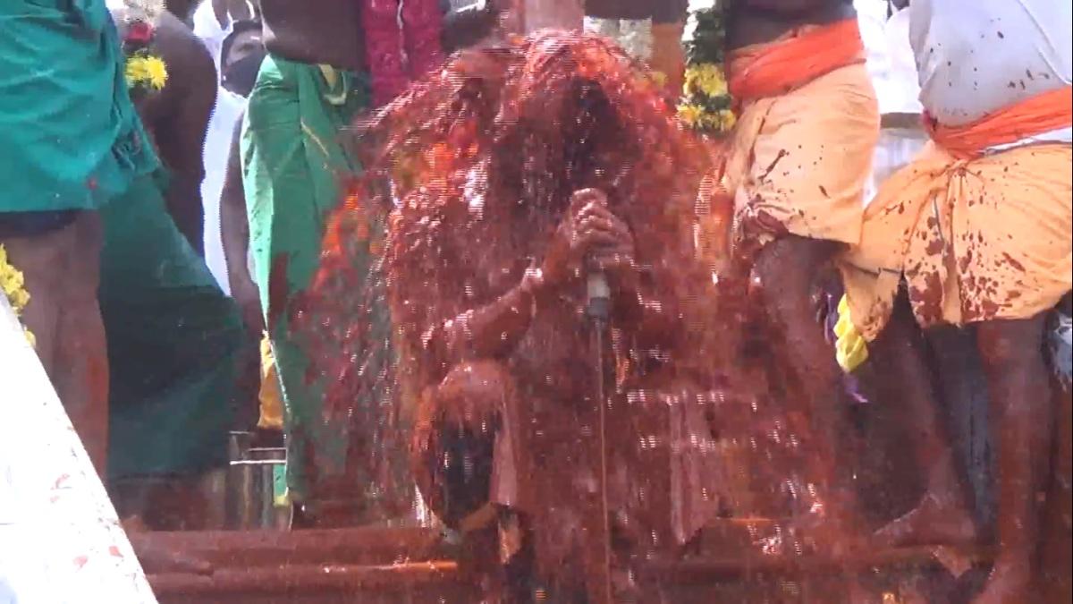 भारत कई धार्मिक विश्वासों का देश है. यहां पर सभी की अपनी आस्था है और अपने विश्वास हैं. कुछ लोग इसे सिर्फ भगवान की भक्ति बताते हैं तो कुछ अंधविश्वास का नाम भी दे देते हैं. अब तमिलनाडु का एक मंदिर सुर्खियों में बना हुआ है जहां पर एक पुजारी का 108 किलो मिर्ची के पेस्ट से अभिषेक किया गया है.