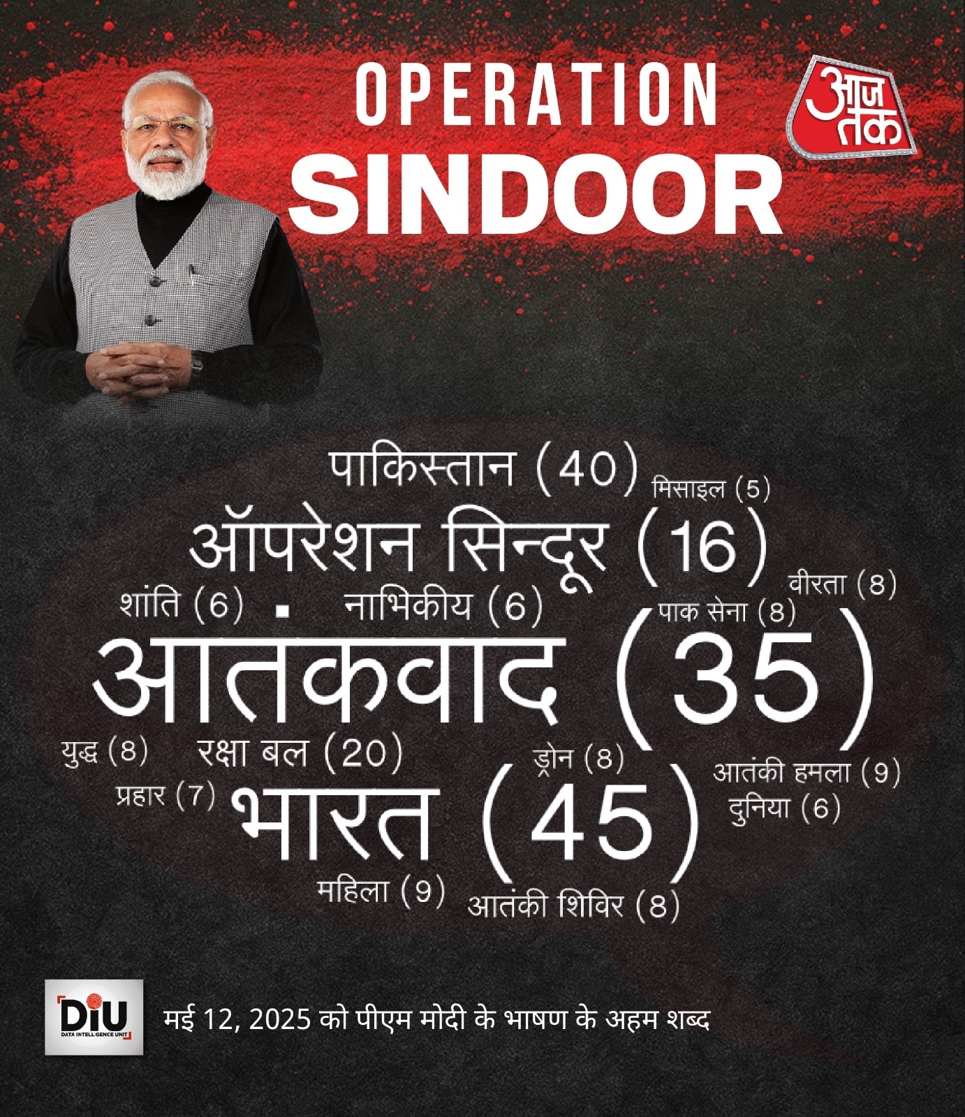 प्रधानमंत्री नरेंद्र मोदी ने सोमवार को देश को संबोधित किया. यह ऑपरेशन सिंदूर के बाद उनका पहला संबोधन था जिसमें उन्होंने आतंक के खिलाफ भारतीय सेना की कार्रवाई की उपलब्धियां गिनाईं और पाकिस्तान को कड़े शब्दों में चेतावनी दी कि आतंकवाद के खिलाफ भारत की कार्रवाई जारी रहेगी.