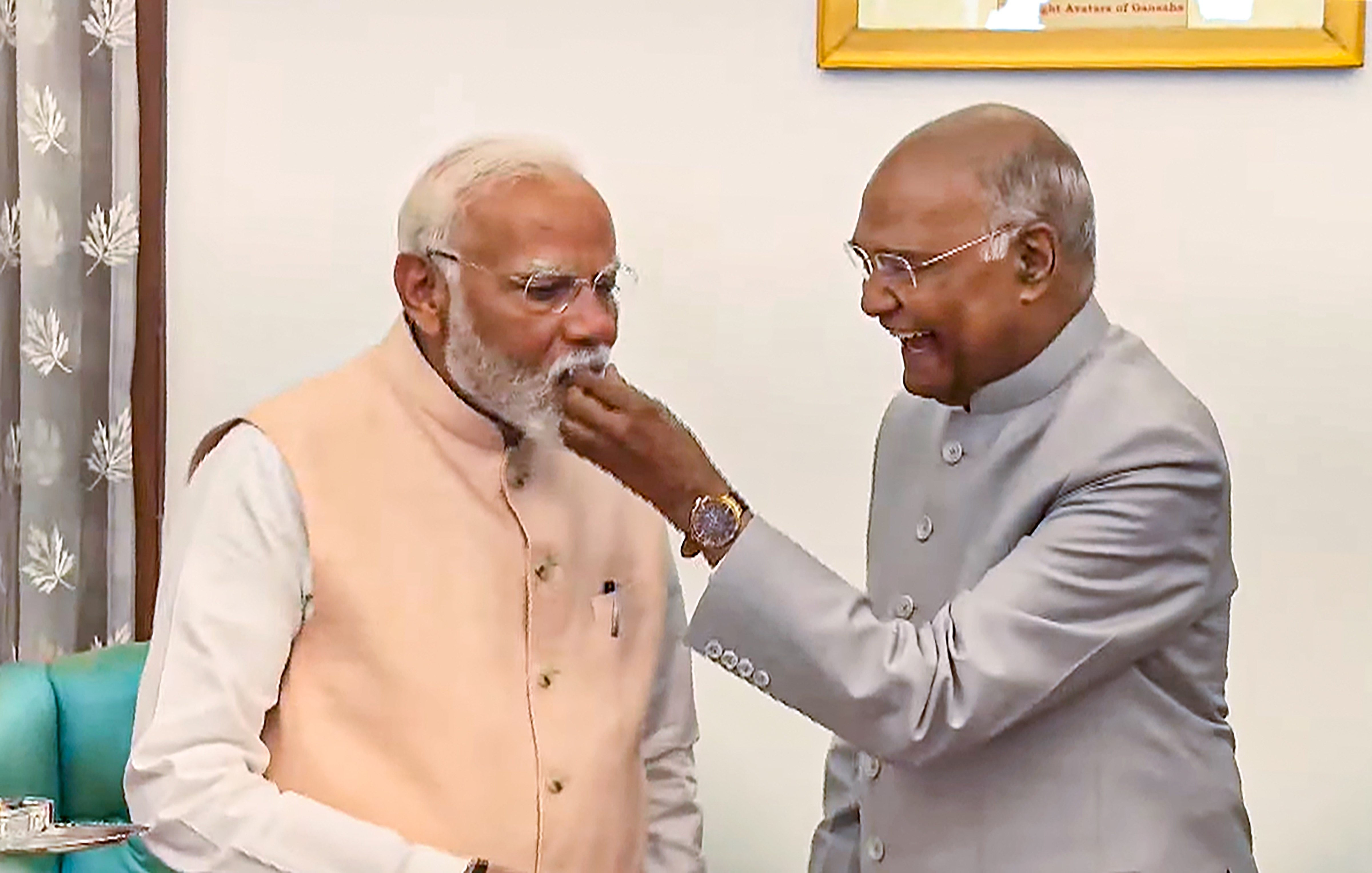 चौथी तस्वीर- पूर्व राष्ट्रपति कोविंद से मुलाकात, इस तस्वीर के जरिए मोदी ने अपनी सोच और एप्रोच का मैसेज लोगों तक पहुंचा दिया.