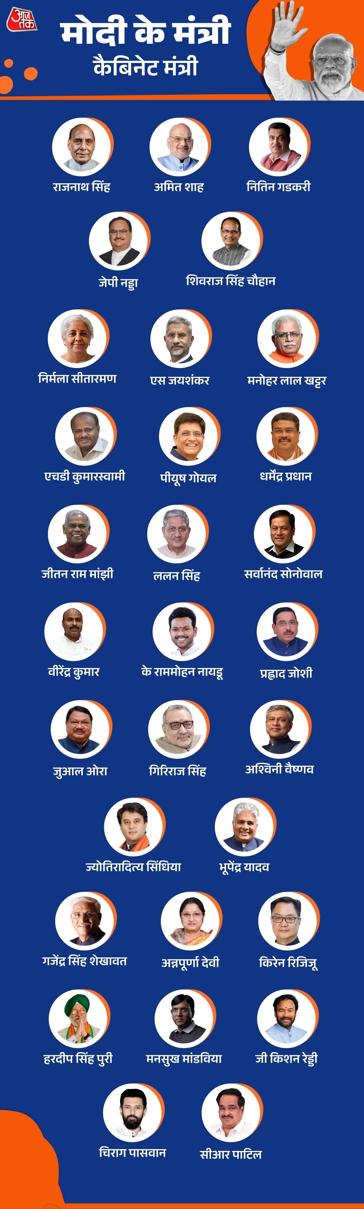 मोदी सरकार 3.0 में रविवार को अब तक भाजपा नेता गजेंद्र सिंह शेखावत, भाजपा नेता अन्नपूर्णा देवी, भूपेंद्र यादव, ज्योतिरादित्य माधवराव सिंधिया, प्रहलाद जोशी, भाजपा नेता डॉ. वीरेंद्र कुमार और जदयू नेता राजीव रंजन (ललन) सिंह ने प्रधानमंत्री नरेंद्र मोदी के नेतृत्व वाली एनडीए सरकार में केंद्रीय कैबिनेट मंत्री के रूप में शपथ ले चुके हैं.