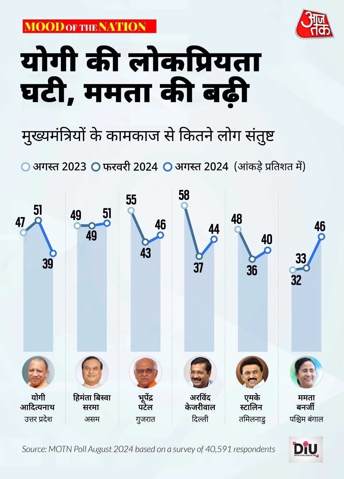 यह भी पढ़ें: योगी, ममता, केजरीवाल, शिंदे, हेमंत... किस फैक्टर की वजह से घट-बढ़ रहा है किस CM का ग्राफ