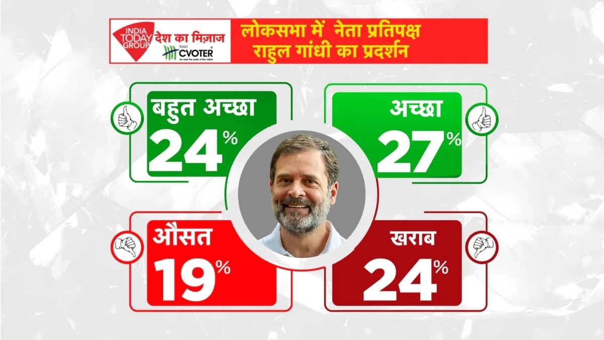 राहुल गांधी की लोकप्रियता का ग्राफ बढ़ा है. फरवरी 2024 में जहां करीब 14 फीसदी लोगों ने पीएम पद के लिए राहुल गांधी को अपनी पसंद बताया था. वहीं छह महीने बाद ताजा सर्वे में राहुल को पीएम के लिए अपनी पसंद बताने वालों की तादाद 22 फीसदी पहुंच गई है. विपक्ष के नेता के तौर पर राहुल गांधी के काम को 50 फीसदी से अधिक लोगों ने अच्छा बताया है.