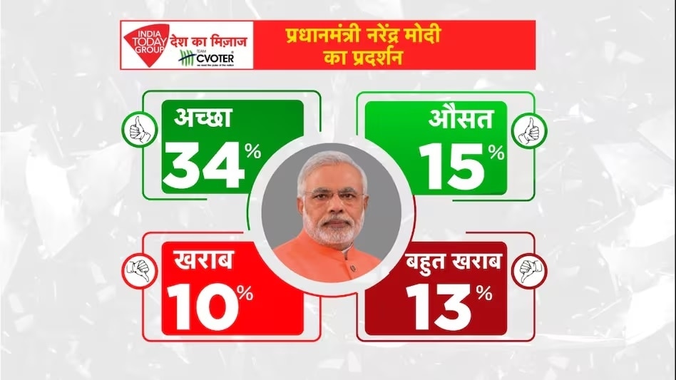 मूड ऑफ द नेशन के ताजा आंकड़े बताते हैं कि पीएम मोदी के प्रदर्शन को अच्छा बताने वालों की संख्या में गिरावट आई है. 10 फीसदी लोगों ने खराब और 13 फीसदी ने बहुत खराब यानि कुल 23 फीसदी लोगों ने पीएम के प्रदर्शन को खराब बताया है. यह नंबर लगभग उतना ही है जितना पिछले सर्वे में था. औसत बताने वालों की संख्या बढ़ी है.