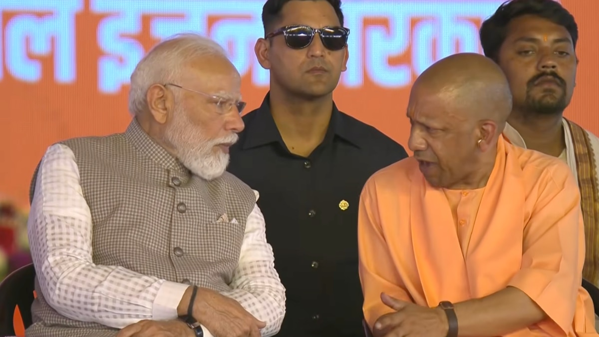 12:02 PM: मंच पर एक साथ प्रधानमंत्री नरेंद्र मोदी और योगी आदित्यनाथ नजर आए.