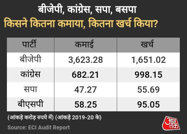 2019-20 में बीजेपी को 3 हजार 623 करोड़ रुपये की कमाई हुई थी. इसमें से 2 हजार 555 करोड़ रुपये तो सिर्फ चुनावी बॉन्ड से आए थे. वहीं, कांग्रेस को 3.17 करोड़ रुपये चुनावी बॉन्ड से मिले थे, जबकि पार्टी की कुल कमाई 682 करोड़ रुपये से ज्यादा थी.