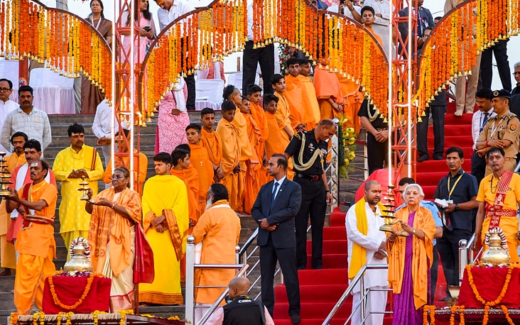 राम मंदिर में दर्शन से पहले राष्ट्रपति सरयू नदी के घाट पर भी महाआरती भी शामिल हुईं. राष्ट्रपति ने कुबेर टीला में भी पूजा की और दिव्य पक्षी जटायु की प्रतिमा पर श्रद्धा सुमन अर्पित किए. अयोध्या पहुंचने पर यूपी की राज्यपाल आनंदीबेन पटेल ने महर्षि वाल्मीकि इंटरनेशनल एयरपोर्ट पर राष्ट्रपति का स्वागत किया.