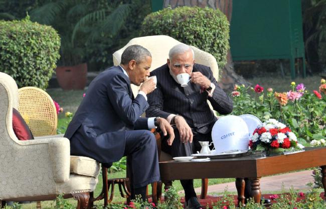ओबामा 26 जनवरी 2015 की गणतंत्र दिवस की परेड के मुख्य अतिथि थे. ये तस्वीर 25 जनवरी 2015 की है. तब पीएम मोदी और ओबामा ने दिल्ली में हैदराबाद हाउस में बैठकर चाय पी थी.