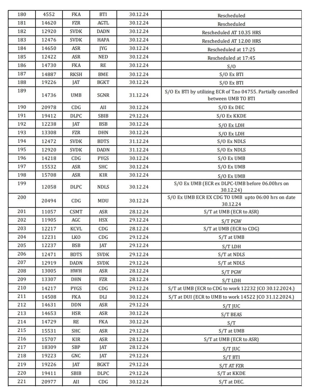 बता दें कि इसके साथ ही 15 ट्रेनें देरी से चल रही हैं जबकि नौ ट्रेनों को रोककर चलाया जा रहा है. रोककर चलाई जाने वाली ट्रेनों को ऐसे स्थानों पर रोका जाएगा, जहां रेलयात्रियों को कोई असुविधा का सामना ना करना पड़े.