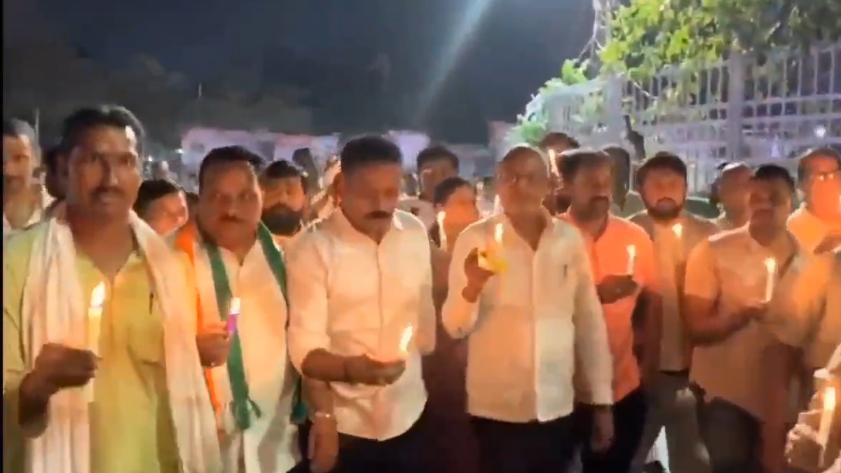 तेलंगाना प्रदेश कांग्रेस कमेटी ने विशाल कैंडल मार्च निकाला. जिसमें मुख्यमंत्री रेवंत रेड्डी, पार्टी के वरिष्ठ नेता और कार्यकर्ता शामिल हुए. इस दौरान AIMIM चीफ असदुद्दीन ओवैसी भी कैंडल मार्च में शामिल हुए.