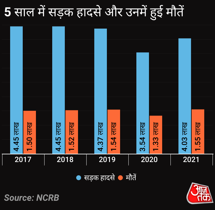 रिपोर्ट के मुताबिक, देश में 2021 में 4,12,432 सड़क हादसे हुए. इनमें 153972 लाख लोगों की मौत हुई है. जबकि 384448 लोग जख्मी हुए हैं. रिपोर्ट में बताया गया है कि 2021 में सीट बेल्ट न पहनने की वजह से 39,231, जबकि हेलमेट न लगाने से 93,763 लोग जख्मी हुए हैं. हेलमेट और सीट बेल्ट जैसे सुरक्षा उपकरणों का इस्तेमाल करने से भले ही दुर्घटनाएं नहीं होती, लेकिन एक्सीडेंट की स्थिति में ये उपकरण घातक और गंभीर चोटों को रोकने में अहम साबित होते हैं.