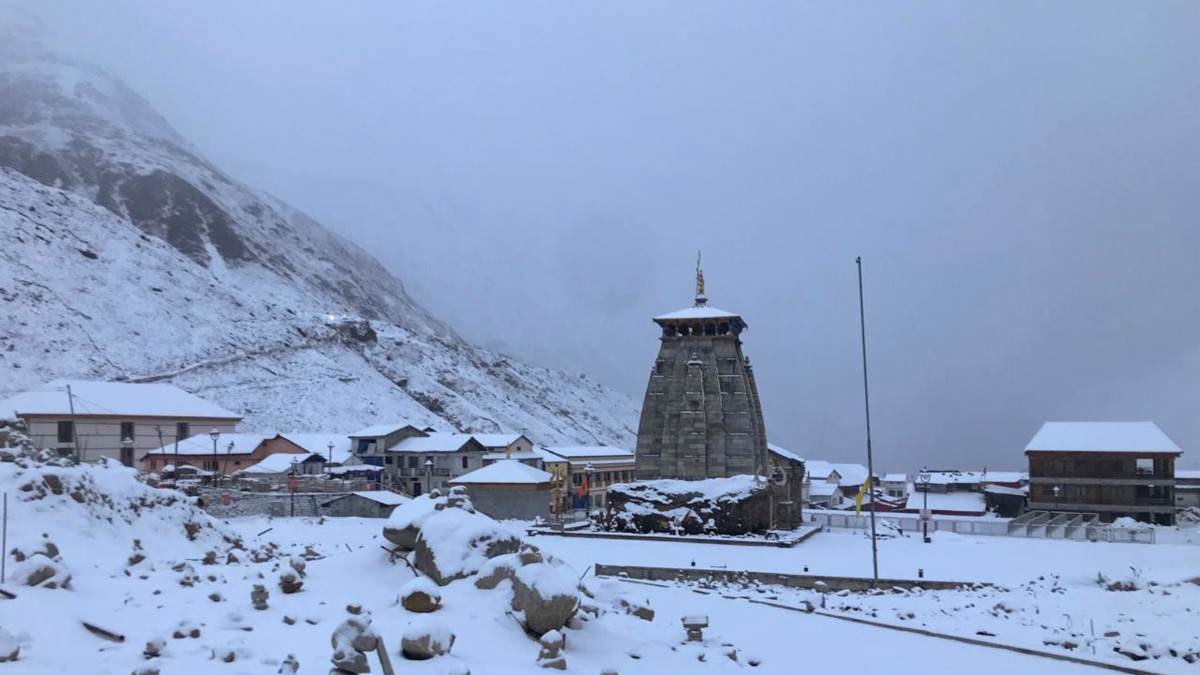 (मौसम की पहली बर्फबारी के बाद केदारनाथ धाम)