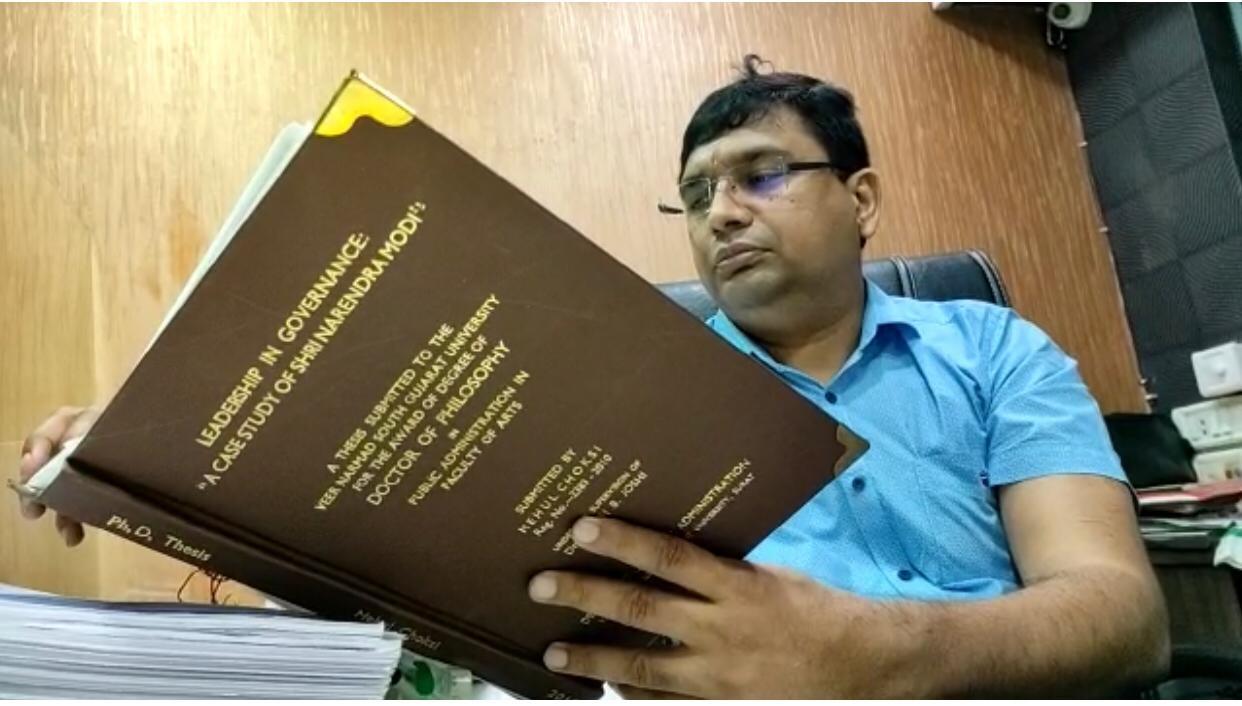 सूरत के रहनेवाले मेहुल चोकसी ने पीएम मोदी पर पीएचडी थीसिस की है. उनकी रिसर्च थीसिस का नाम 'लीडरशिप अंडर गवर्नमेंट- केस स्टडी ऑफ नरेंद्र मोदी' है. इस रिसर्च में 450 लोगों का इंटरव्यू किया गया था, जिसमें सरकारी अफसर, किसान, स्टूडेंट और पॉलिटिकल लीडर्स थे. मेहुल ने इनसे प्रधानमंत्री नरेंद्र मोदी की लीडरशिप क्वालिटी से जुड़े सवाल पूछे थे और इसी के आधार पर उन्होंने पाया कि पीएम मोदी की स्पीच काफी अपीलिंग होती है.