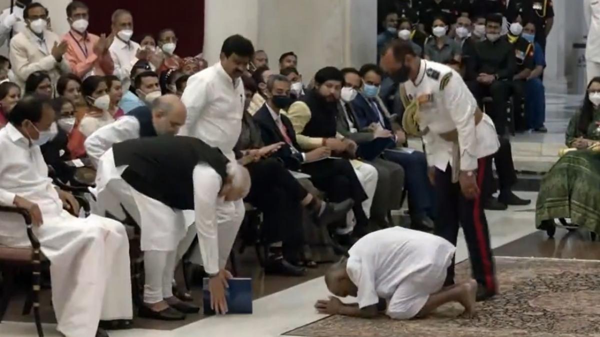 पीएम मोदी को नमस्कार करने के बाद स्वामी शिवानंद पद्म पुरस्कार सम्मान लेने से पहले राष्ट्रपति रामनाथ कोविंद के सामने भी घुटनों पर बैठ गए. स्वामी शिवानंद को अपने सामने झुका हुआ देखने के बाद राष्ट्रपति कोविंद आगे आए और उन्हें झुककर उठाया.