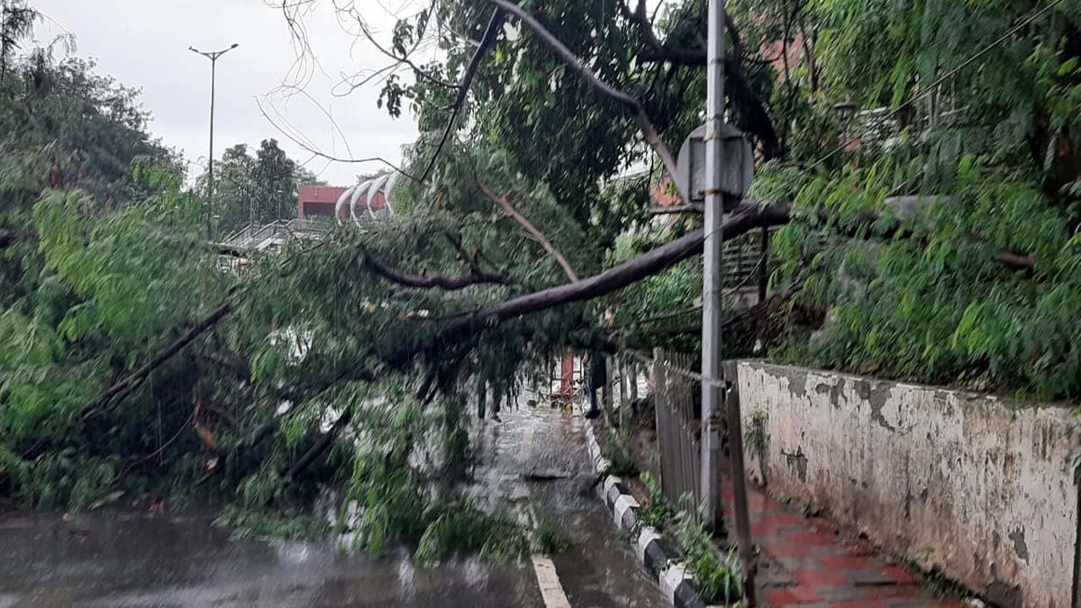 दिल्ली में भारी बारिश की वजह से आईटी से दिन दयाल उपाध्याय की तरफ जाने वाली सड़क पर पेड़ गिरने से ट्रैफिक बाधित हुआ है.