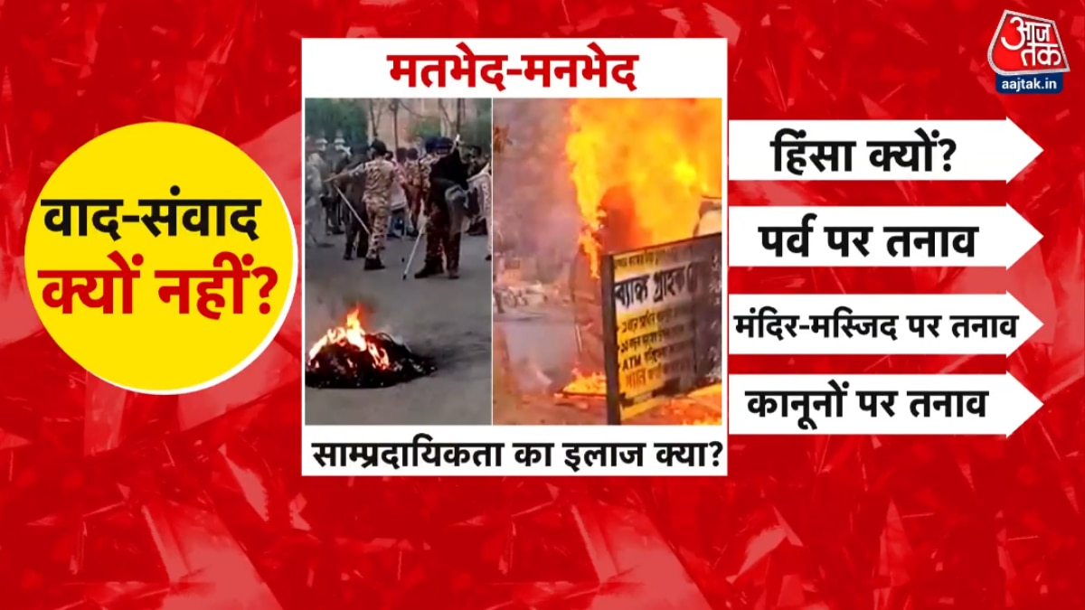 इन किसी मुद्दे पर मनभेद और मतभेद के बीच वाद-संवाद तो ठीक है, लेकिन वाद संवाद की लक्ष्मण रेखा क्यों बार-बार टूट रही है. देश में पर्व और त्योहार पर तनाव है, मंदिर-मस्जिद को लेकर तनाव है, अब तो संसद से बने कानून को लेकर भी तनाव है. आखिर हर मुद्दों में घुली सांप्रदायिकता की बीमारी की दवा क्या है? मतबल विरोध-प्रतिरोध तो ठीक है लेकिन इतनी नफरत क्यों, इतना क्रोध क्यों? सवाल बड़ा है, क्योंकि एक रिपोर्ट के मुताबिक देश में सांप्रदायिक दंगों के ग्राफ में तेजी से उछाल आया है.