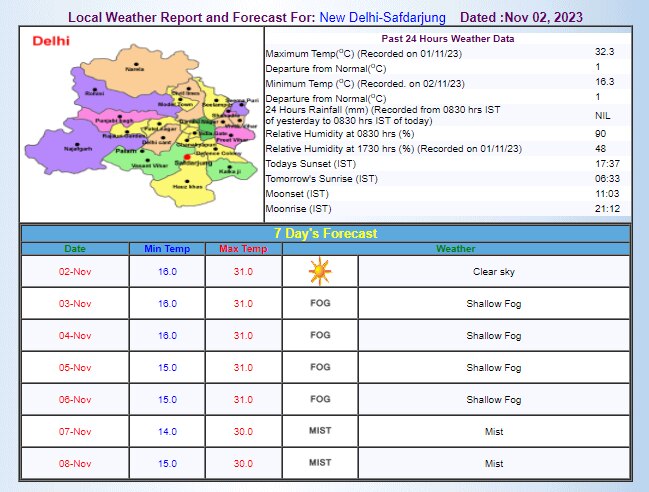 देश की राजधानी दिल्ली में अब तापमान में कमी देखने को मिल रही है और कोहरे का दौर भी शुरू हो गया है. दिल्ली में अगले 4 दिन कोहरे का पूर्वानुमान जताया गया है. वहीं, प्रदूषण को लेकर भी अलर्ट जारी है. स्काईमेट के मुताबिक, दिल्ली के वायु गुणवत्ता सूचकांक में किसी सुधार की उम्मीद नहीं है. कल दिल्ली और एनसीआर का वायु प्रदूषण बहुत खराब से गंभीर श्रेणी में रहेगा. तापमान की बात करें तो दिल्ली में न्यूनतम तापमान 16 डिग्री और अधिकतम तापमान 31 डिग्री सेल्सियस दर्ज हो सकता है.