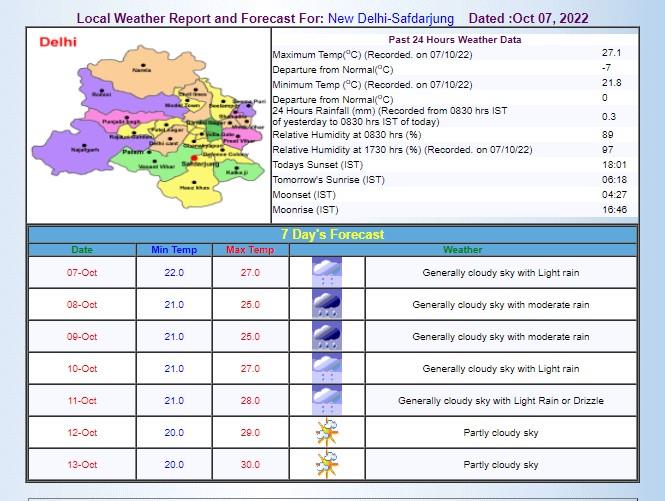 दिल्ली में बीते दिन से हल्की से मध्यम बारिश हो रही है. लगातार हल्की बारिश से देश की राजधानी दिल्ली के तापमान में गिरावट आई है. मौसम के इस बदलाव को ठंड की आहट कहा जा सकता है. इसके अलावा आसमान में बादल छाए हुए हैं. तापमान की बात करें तो न्यूनतम तापमान 21 डिग्री और अधिकतम तापमान 25 डिग्री बना हुआ है. मौसम विभाग के मुताबिक, 11 अक्टूबर तक बारिश रहने की संभावना है. मौसम की इस करवट से तापमान में गिरावट आई है. दिल्ली में बारिश को लेकर देखें मौसम विभाग की भविष्यवाणी....