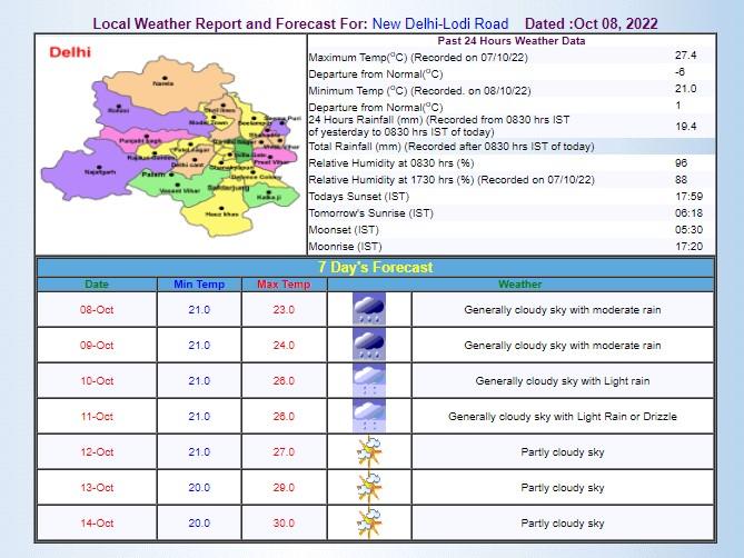 दिल्ली और उसके आसपास के इलाकों में पिछले दो दिन से रुक-रुककर बारिश हो रही है. IMD के मुताबिक, आज (9 अक्टूबर) को भी मध्यम बारिश रहने के आसार हैं. तापमान की बात करें तो न्यूनतम तापमान 21 डिग्री सेल्सियस और अधिकतम तापमान 24 रहने की संभावना है. वहीं, नोएडा की बात करें तो यहां भी आंधी-तूफान के साथ बारिश रहेगी. गुरुग्राम में भी रविवार को बारिश जारी रहेगी.