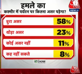 इस सवाल के जावाब में 30 प्रतिशत का मानना है कि अर्थव्यवस्था-पर्यटन को नुकसान पहुंचाने के लिए आतंकियों ने सैलानियों के निशाना बनाया. 35 प्रतिशत लोगों का मानना है कि आतंकी मोदी सरकार की कोशिशों को नुकसान पहुंचाना चाहते थे. जबकि 13 प्रतिशत लोग मानते हैं कि सेना-पुलिस पर हमले से बेहतर रणनीति.