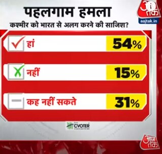 इसके जवाब में 31 प्रतिशत लोग मानते हैं कि ये हमला कश्मीर को भारत से अलग करने का प्रयास है तो 18 प्रतिशत लोग इस हमले को जम्मू-कश्मीर से आर्टिकल 370 हटाने का विरोध में देख रहे हैं. जबकि 17 प्रतिशत का कहना है कि पाक ने इस हमले से घरेलू मुद्दों से ध्यान भटकाया है. साथ ही 7 प्रतिशत लोग मानते हैं कि ये हमला पीओके वापस लेने की प्रतिक्रिया है. 10 प्रतिशत लोगों ने इस वक्फ कानून के विरोध में प्रतिक्रिया बताया.
