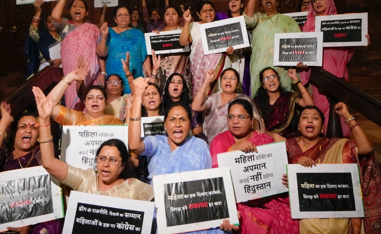 महिला आरक्षण बिल से जुड़े संविधान संशोधन बिल के विपक्ष में 230 वोट पड़े. यह बिल पारित कराने के लिए जरूरी 352 के आंकड़े से सरकार 54 वोट पीछे रह गई और यह बिल गिर गया. इस बिल के संसद में गिर जाने के बाद सत्ताधारी भारतीय जनता पार्टी (बीजेपी) की महिला सांसदों ने मकर द्वार पर प्रोटेस्ट किया. पार्टी ने अब इसे लेकर 18 अप्रैल से राष्ट्रव्यापी प्रोटेस्ट का ऐलान कर दिया है.