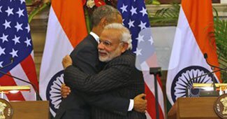 ओबामा का औपचारिक स्वागत करने के लिए राष्ट्रपति प्रणब मुखर्जी के साथ प्रधानमंत्री नरेंद्र मोदी भी मौजूद थे.