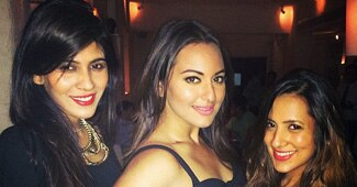 वी नेक वाली काली रंग की मिडी के साथ सुनहरे रंग के हाई हील्स सैंडल में सोनाक्षी बहुत खूबसूरत नजर आईं.