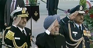राष्ट्रपति प्रणब मुखर्जी द्वारा तिरंगा फहराने और राष्ट्रगान की धुन के साथ ही गणतंत्र दिवस की भव्य परेड राजपथ से लालकिले के लिए शुरू हुई.