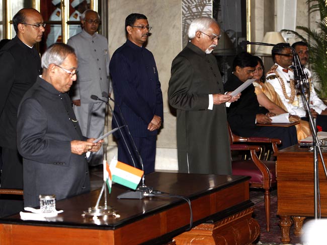 राष्ट्रपति प्रणब मुखर्जी ने हामिद अंसारी को उपराष्ट्रपति पद की शपथ दिलाई.