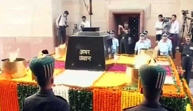 रक्षा मंत्री ए के एंटनी, इंडियन एयर फोर्स के मार्शल अर्जन सिंह और तीनों सेनाओं के प्रमुखों ने इंडिया गेट स्थित अमर जवान ज्योति पर शहीदों को श्रद्धांजलि दी.