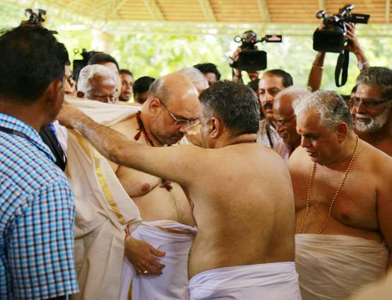 पूजा अर्चना करने के बाद शाह राज्य में 15 दिवसीय रैली का शुभारंभ करने के लिए पय्यान्नूर गए. बीजेपी और संघ परिवार के कार्यकर्ताओं के खिलाफ वाम दल के कथित ‘लाल आतंकवाद’ के विरोध में यह रैली निकाली जा रही है.